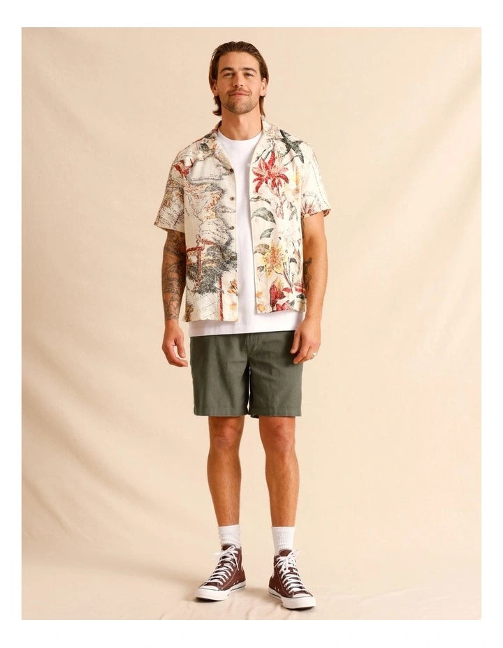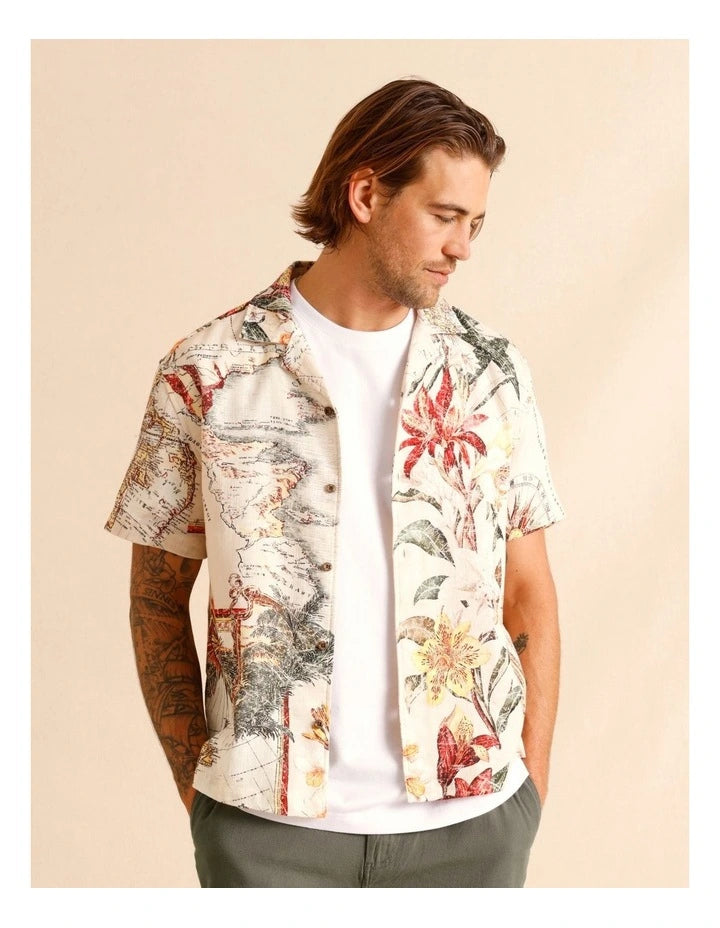 Maddox Moses Placement Print Short Sleeve Shirt in Natural